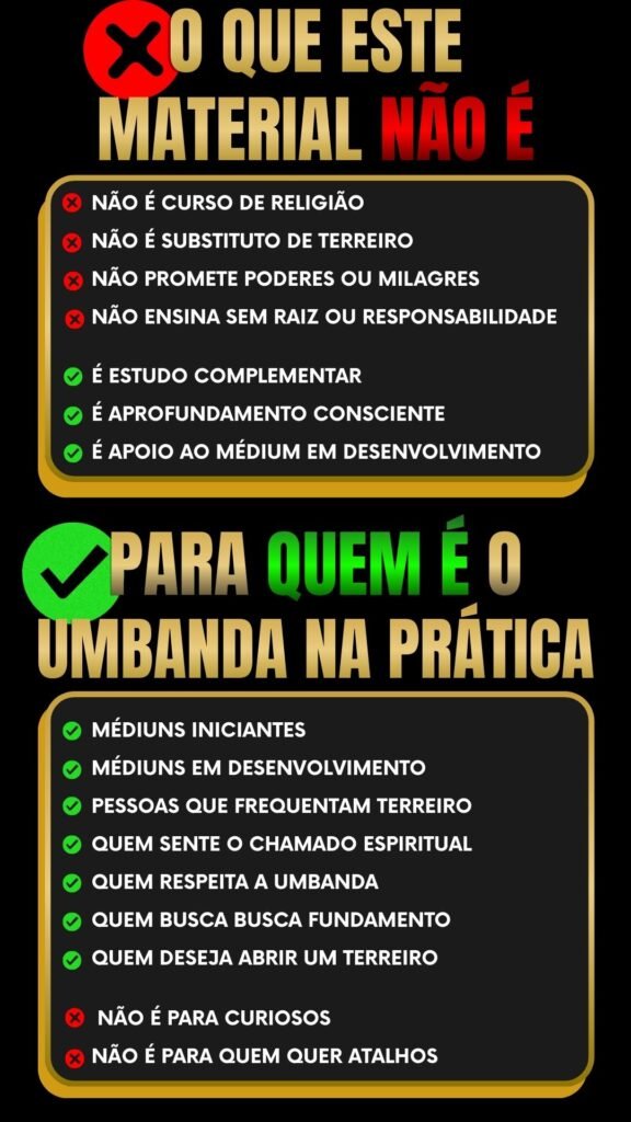 : Este material não substitui o terreiro. Ele complementa, fortalece e aprofunda o que você já vive dentro da religião.